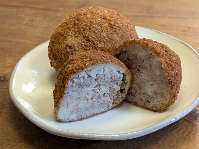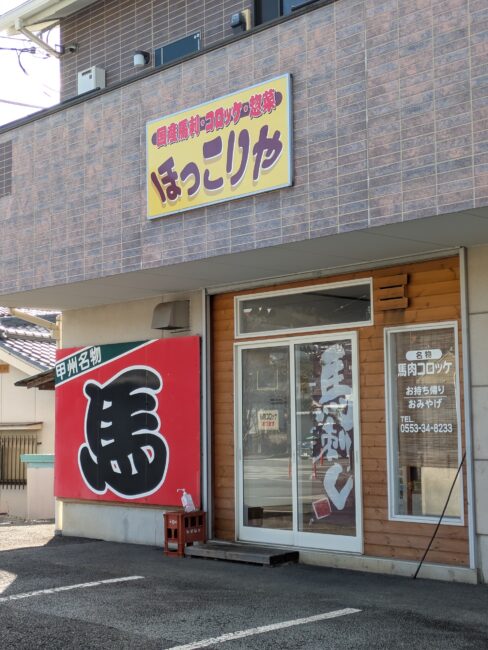 また、JR塩山駅から徒歩圏内の「ほっこりや」の馬肉コロッケ(爆弾コロッケと呼ばれることも)は、馬肉がふんだんにつかわれたコロッケで、ソフトボールと見間違うような大きさに度肝を抜かれます